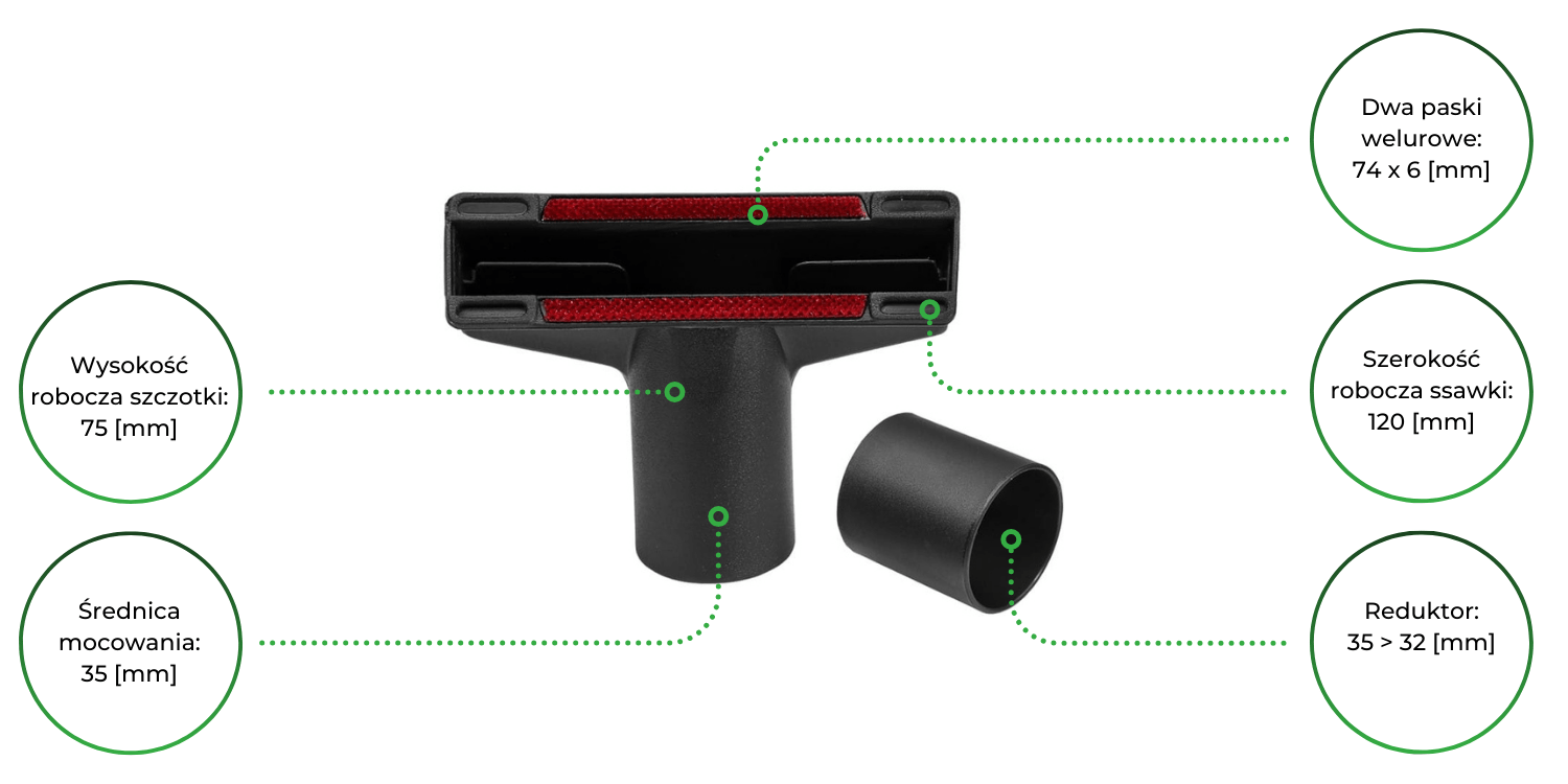 Zmniejsza średnicę wewnętrzną ssawek i szczotek