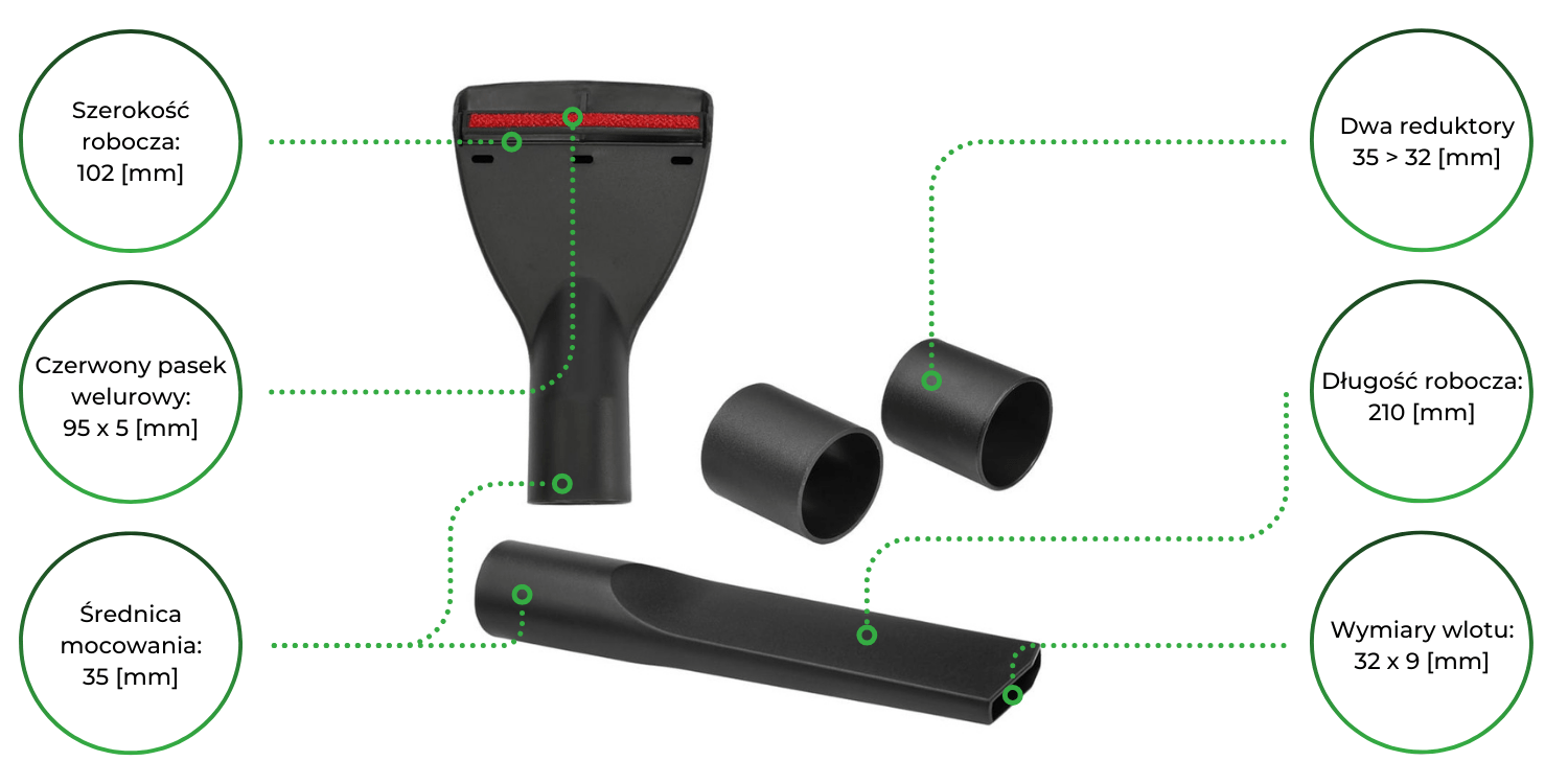 zmniejszanie średnicy wewnętrznej ssawek i szczotek 35 [mm] do średnicy wewnętrznej 32 [mm] |