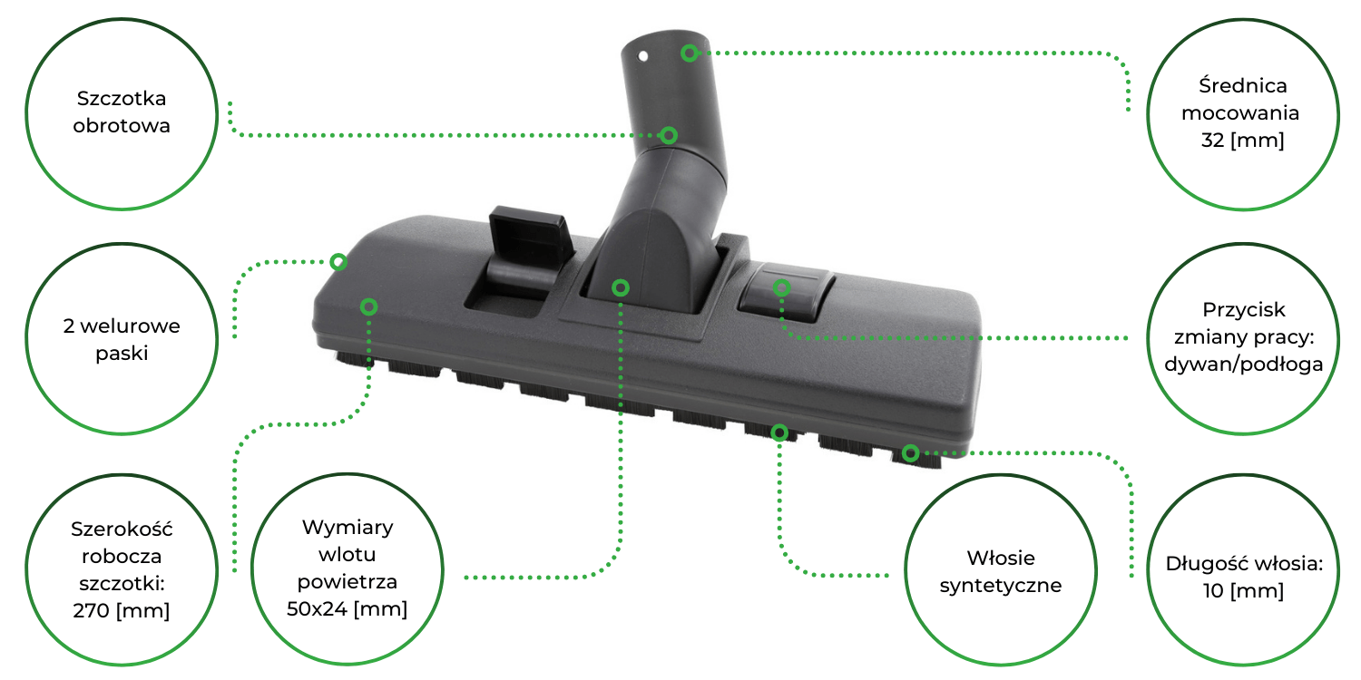 Wielofunkcyjna szczotka Kombi ze zmianą trybu pracy to idealny produkt dla posiadaczy różnych powierzchni w domu. Chcesz odkurzyć dywan, a potem gładkie powierzchnie? Wystarczy Ci jedna szczotka! Po odkurzeniu dywanów i wykładzin za pomocą jednego kliknięcia zmiany trybu na szczotce schowaj włosie i swobodnie odkurzaj podłogę.