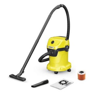 Odkurzacz Kärcher WD 3 idealnie sprawdzi się w roli odkurzacza samochodowego. Jest również doskonałym odkurzaczem do dbania o czystość w piwnicy, przydomowym warsztacie, garażu oraz na tarasie i podjeździe. Jego licznymi atutami są kompaktowe wymiary minimalizujące ilość zajmowanego miejsca podczas przechowywania, wielofunkcyjność pozwalająca na odkurzanie różnorodnych powierzchni z opcją zasysania lub wydmuchu, niewielki ciężar i wyjątkowo korzystny stosunek ceny do jakości. Odkurzacz uniwersalny Kärcher WD3 oferuje również funkcję wydmuchu oraz jest wytrzymały i odporny, co umożliwia zbieranie żwiru. Odkurzacz został wyposażony w filtr kartidżowy, dzięki czemu znajduje zastosowanie w odkurzaniu kurzu i płynów.