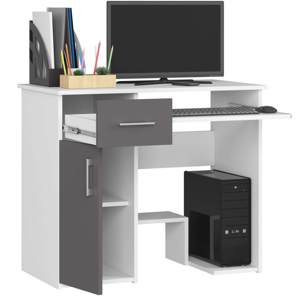 Modern Desk Dual Białe / Szary to stylowe i funkcjonalne biurko komputerowe, które udowadnia, że wysoka jakość może iść w parze z atrakcyjną ceną. Połączenie białego korpusu z frontami w kolorze grafitowej szarości nadaje meblowi nowoczesny, loftowy charakter. Dzięki szerokości 90 cm oraz przemyślanemu układowi półek i szuflad, jest to idealne rozwiązanie do nauki i pracy, które bez trudu zmieści się w każdym pomieszczeniu.