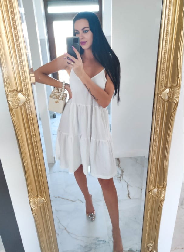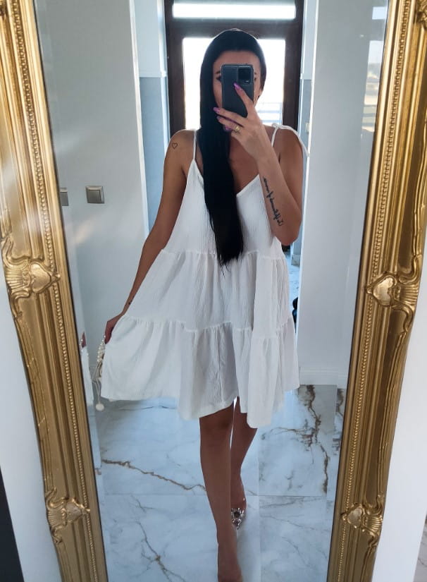 Wprowadź lekkość i letnią świeżość do swojej garderoby dzięki naszej białej trapezowej sukience na ramiączkach. Ta sukienka to kwintesencja letniego stylu, łącząca w sobie wygodę, swobodę i ponadczasową elegancję.