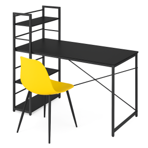 Zestaw: Biurko nowoczesne czarne z 3 półkami + krzesło skandynawskie Livio żółte