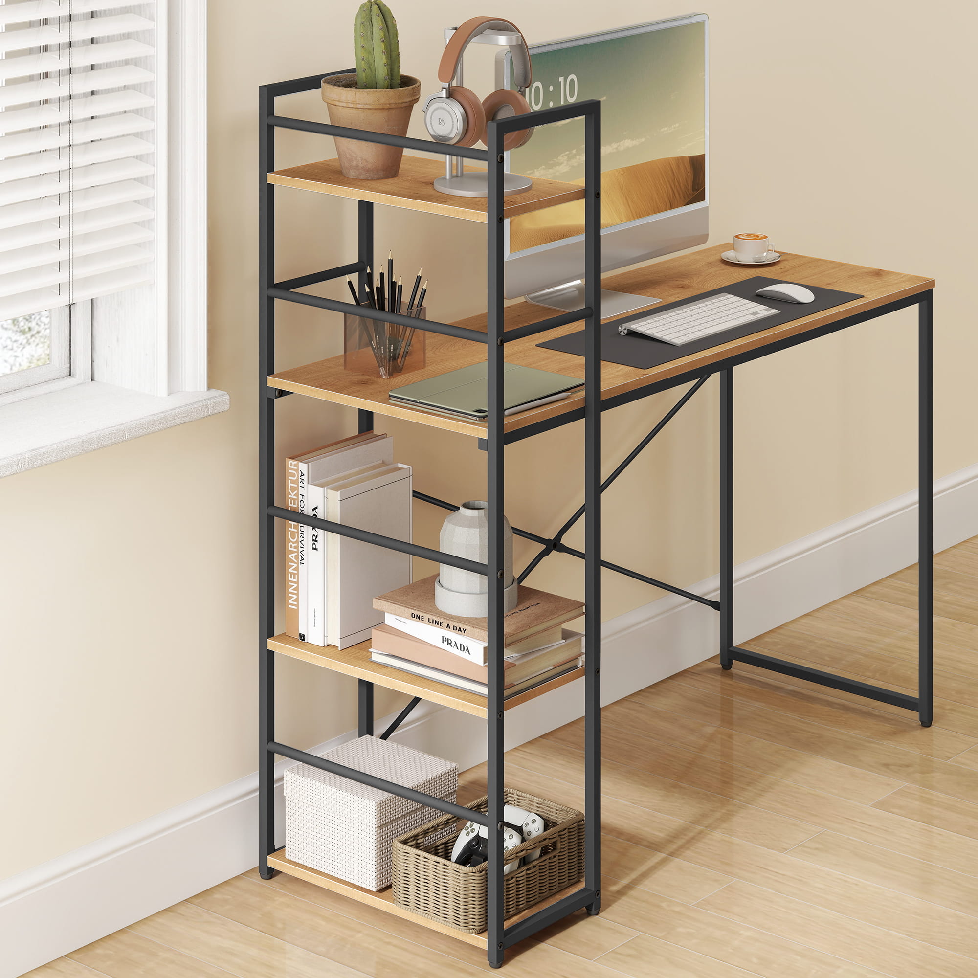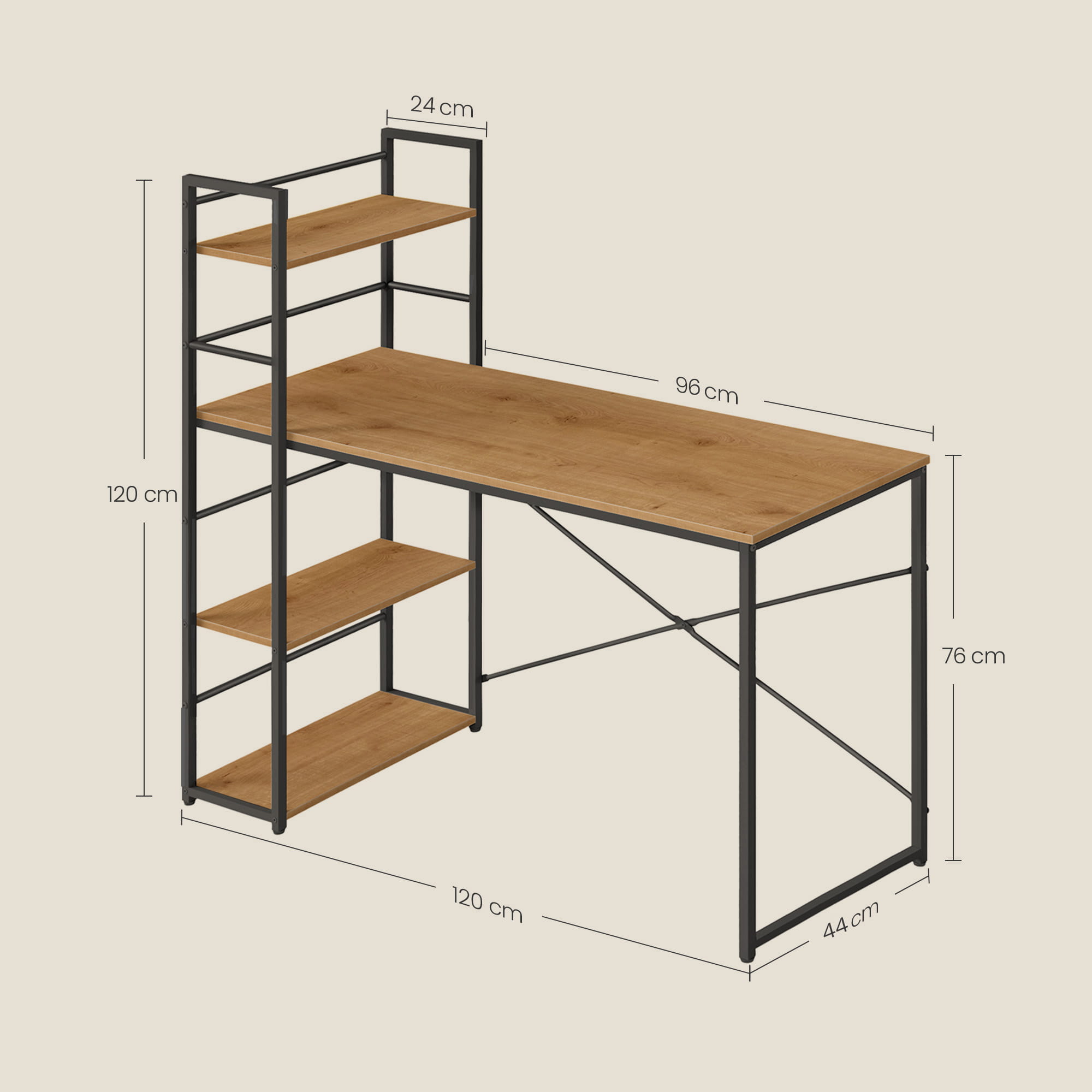 ✓Stylowe, stabilne biurko, na którym możemy umieścić komputer, monitor, drukarkę czy też książki i zeszyty. Na półkach możemy umieścić kwiaty doniczkowe, zdjęcia lub inne drobiazgi.
