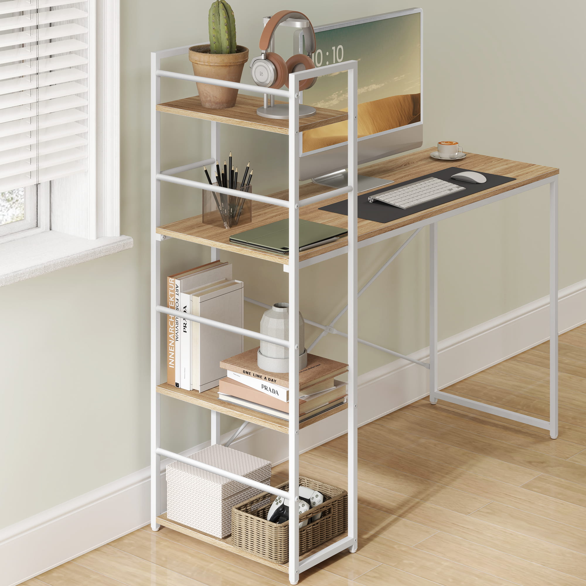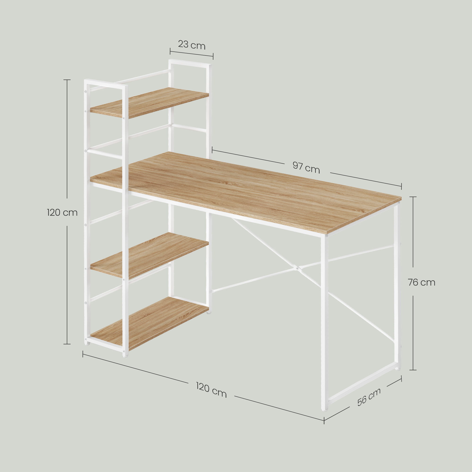 ✓Stylowe, stabilne biurko, na którym możemy umieścić komputer, monitor, drukarkę czy też książki i zeszyty. Na półkach możemy umieścić kwiaty doniczkowe, zdjęcia lub inne drobiazgi.