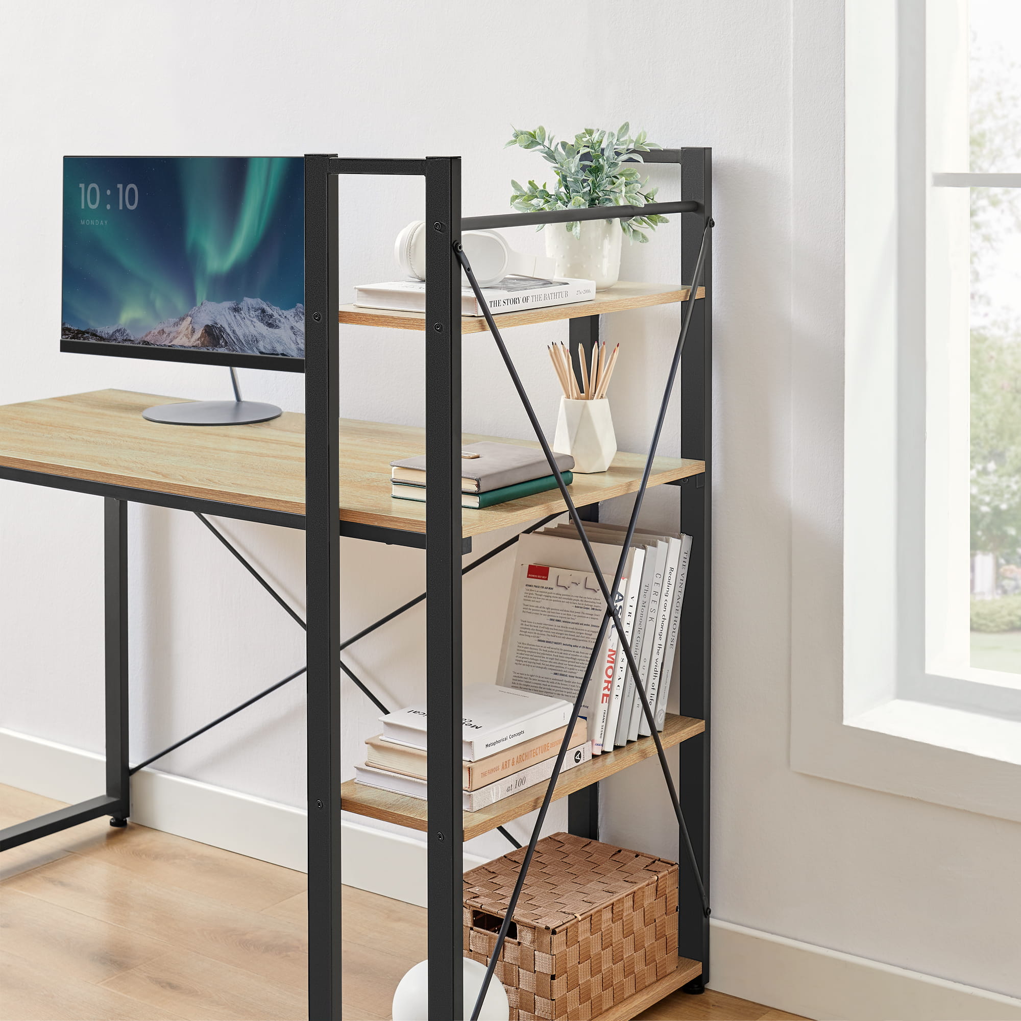 Idealnie spasowane elementy ramy oraz oprawa blatu biurka oraz półek nadadzą Twojemu wnętrzu wdzięku. Zadbaj o estetykę swojego pokoju, sypialni czy też domowego biura wybierając produkty sprawdzone, o najwyższej jakości wykonania.