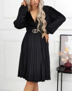 Dodaj naszą długą welurową sukienkę plisowaną z paskiem w talii do swojej kolekcji, aby poczuć się jak prawdziwa królowa wieczoru. To nie tylko ubranie, to wyraz klasy i stylu, który z pewnością przyciągnie spojrzenia i sprawi, że będziesz błyszczeć na każdym przyjęciu.