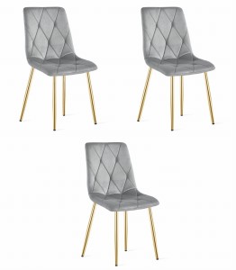 Krzesło LIBRA - aksamit szary jasny / nogi złote zestaw 3 sztuk