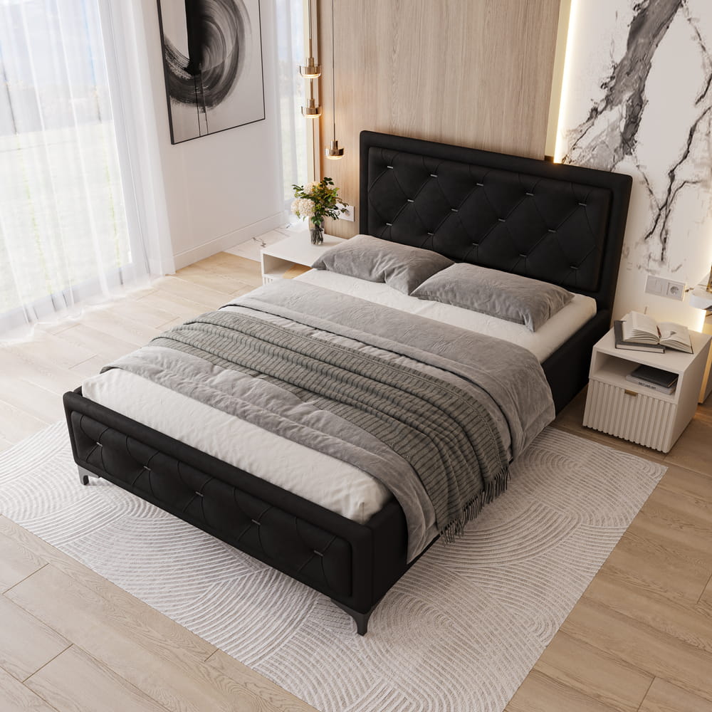 Łóżko tapicerowane Glamour Luxe 160/200 z pojemnikiem Czarne
