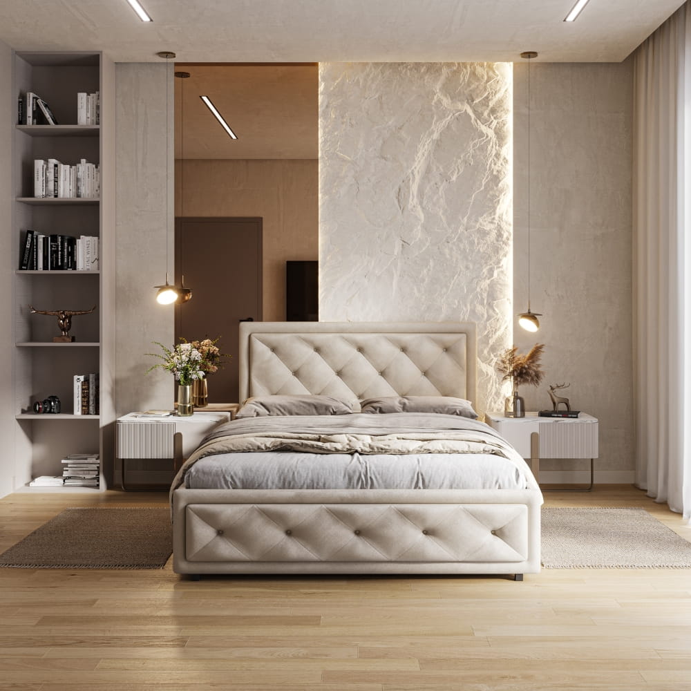 Łóżko tapicerowane Velvet Dream 160/200 z pojemnikiem Beż