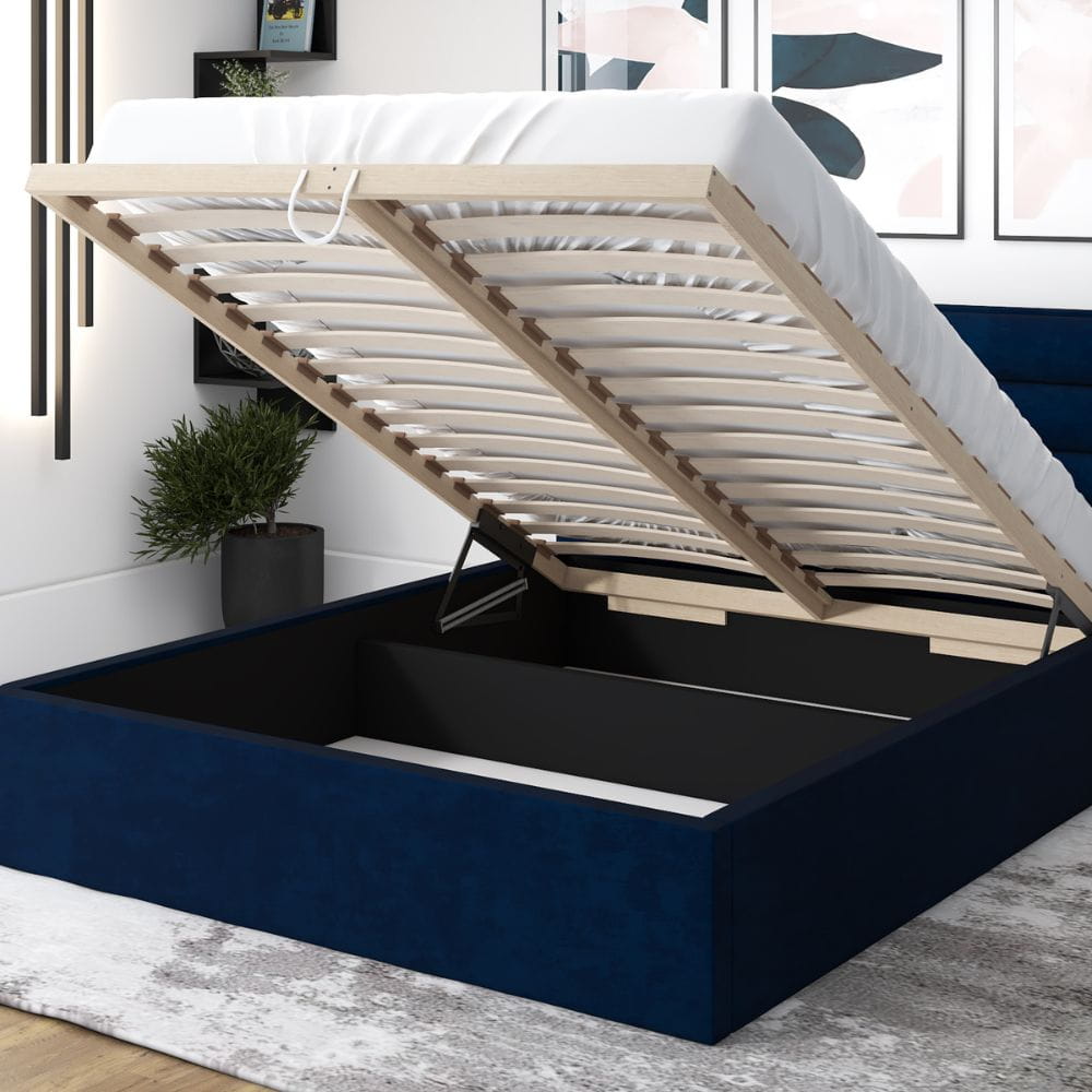 Łóżko tapicerowane z pojemnikiem na pościel 120x200 Orion Granatowe