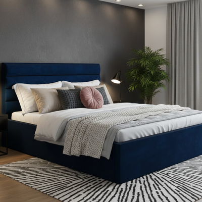 Szukasz łóżka, które zachwyca od pierwszego wejrzenia? Model Orion w głębokim granacie to wybór dla osób ceniących wyrafinowaną estetykę. Welurowe wykończenie pięknie współpracuje ze światłem, nadając wnętrzu głębi i przytulności.