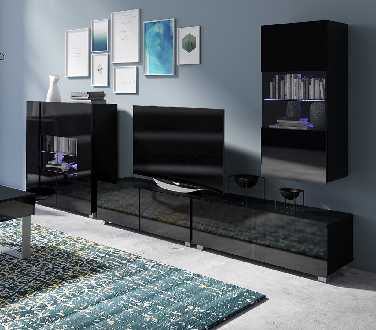 Meble do salonu CALABRIA 17 czarny / czarny połysk
