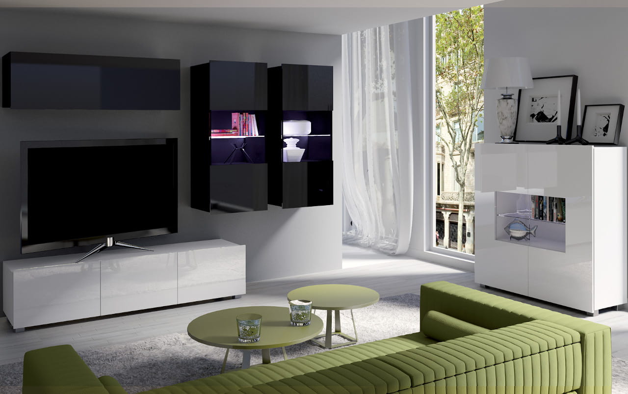 Meble do salonu CALABRIA 6 czarny / biały połysk