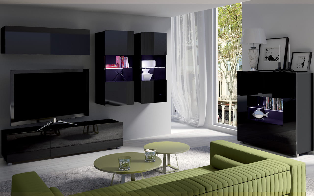 Meble do salonu CALABRIA 6 czarny / czarny połysk