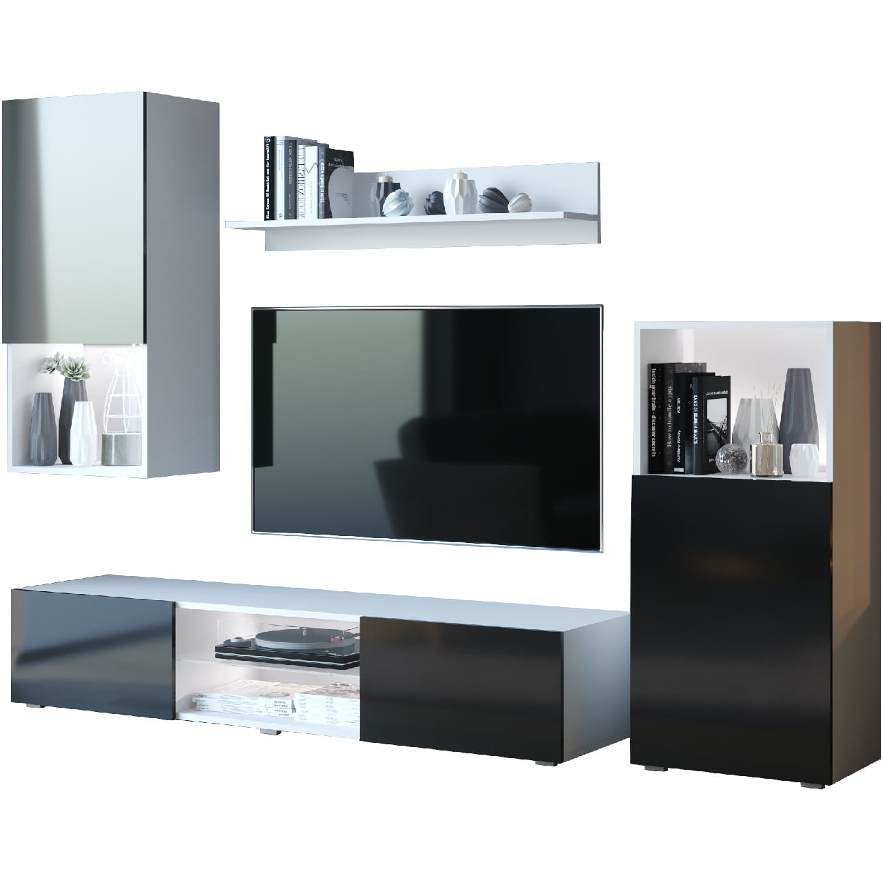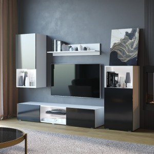 Meblościanka LOFT biały / czarny połysk