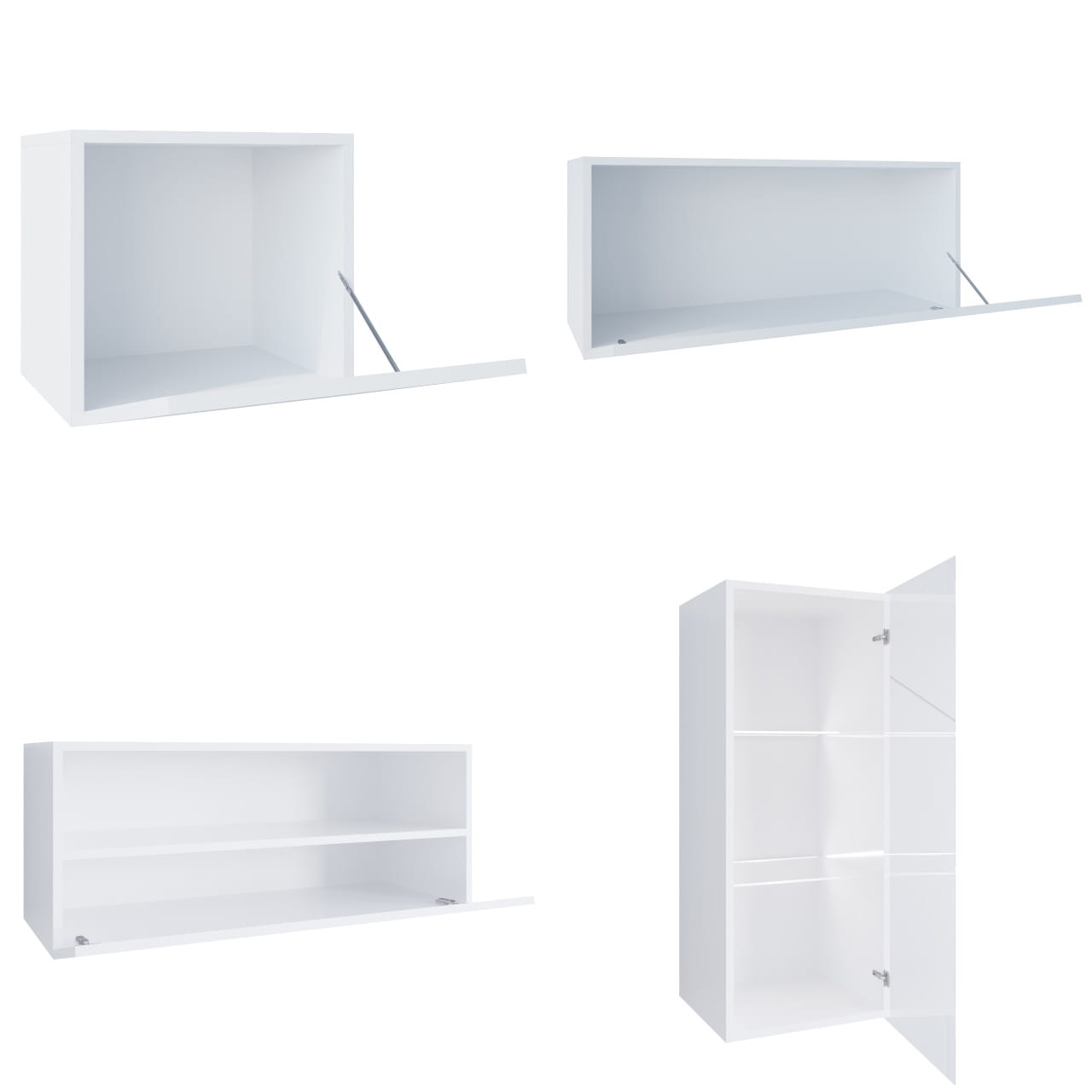 W zestawie dołączone siłowniki dla wybranych elementów w wariancie poziomym oraz półki wewnętrzne dla wybranych elementów w wariancie pionowym.
