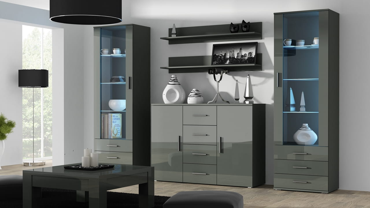 Kod produktu: SOHO 3H Meblościanka szary / szary połysk