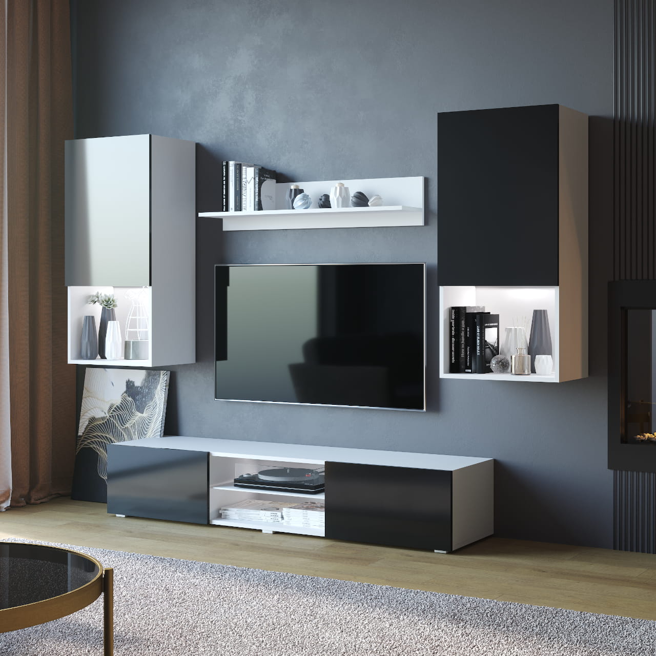 Meblościanka VERO biały / czarny połysk