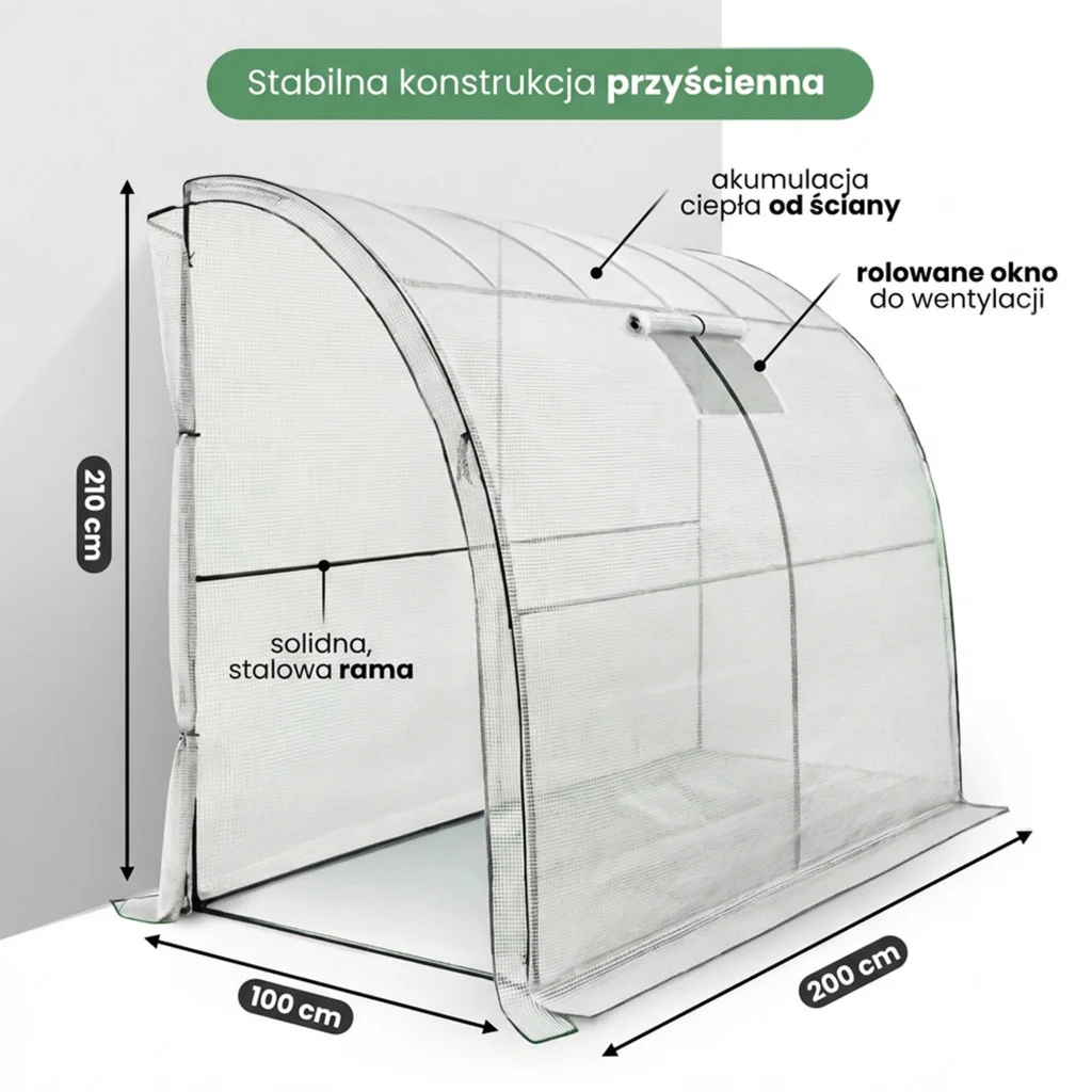 Przyścienna szklarnia foliowa 100x200x210 cm | Biała folia UV