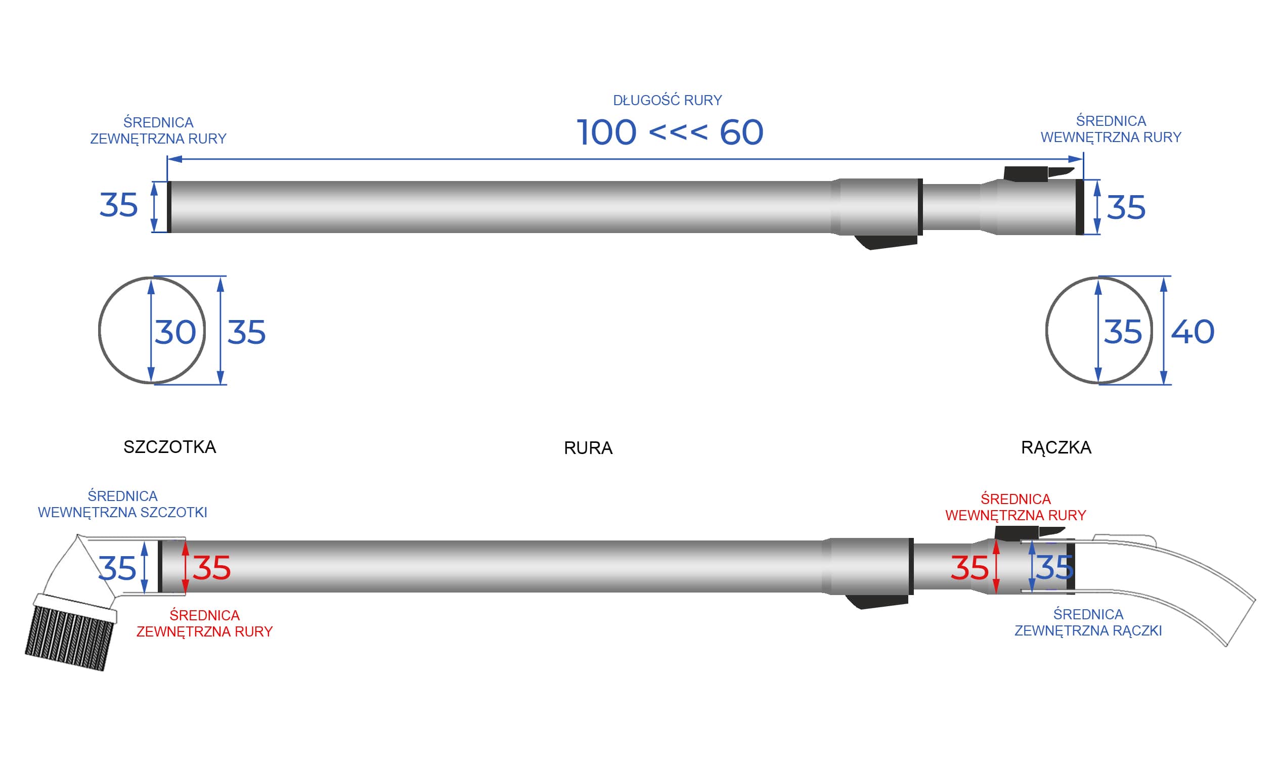 - Średnica zew. rurki od strony mocowania ze szczotką 35 [mm]