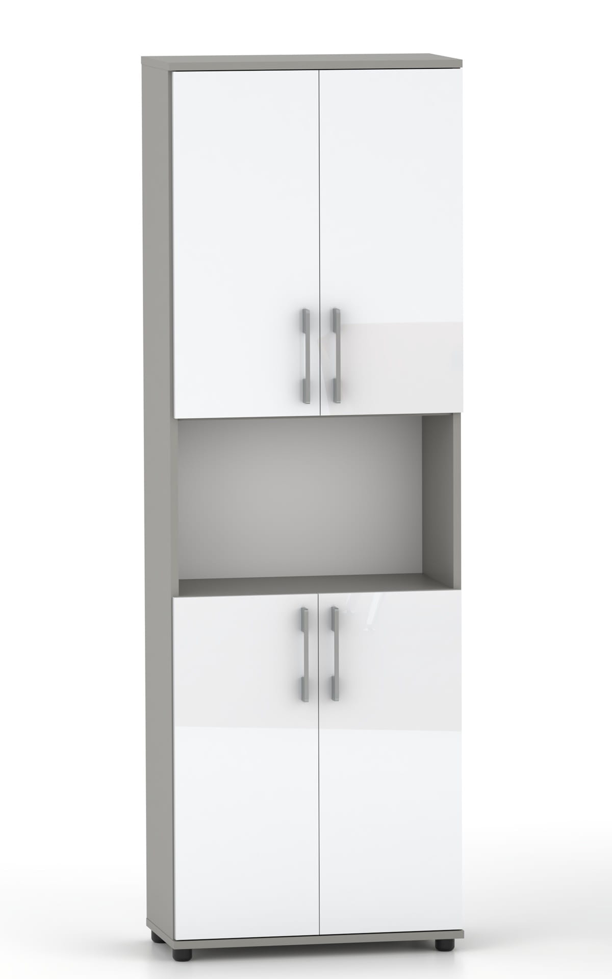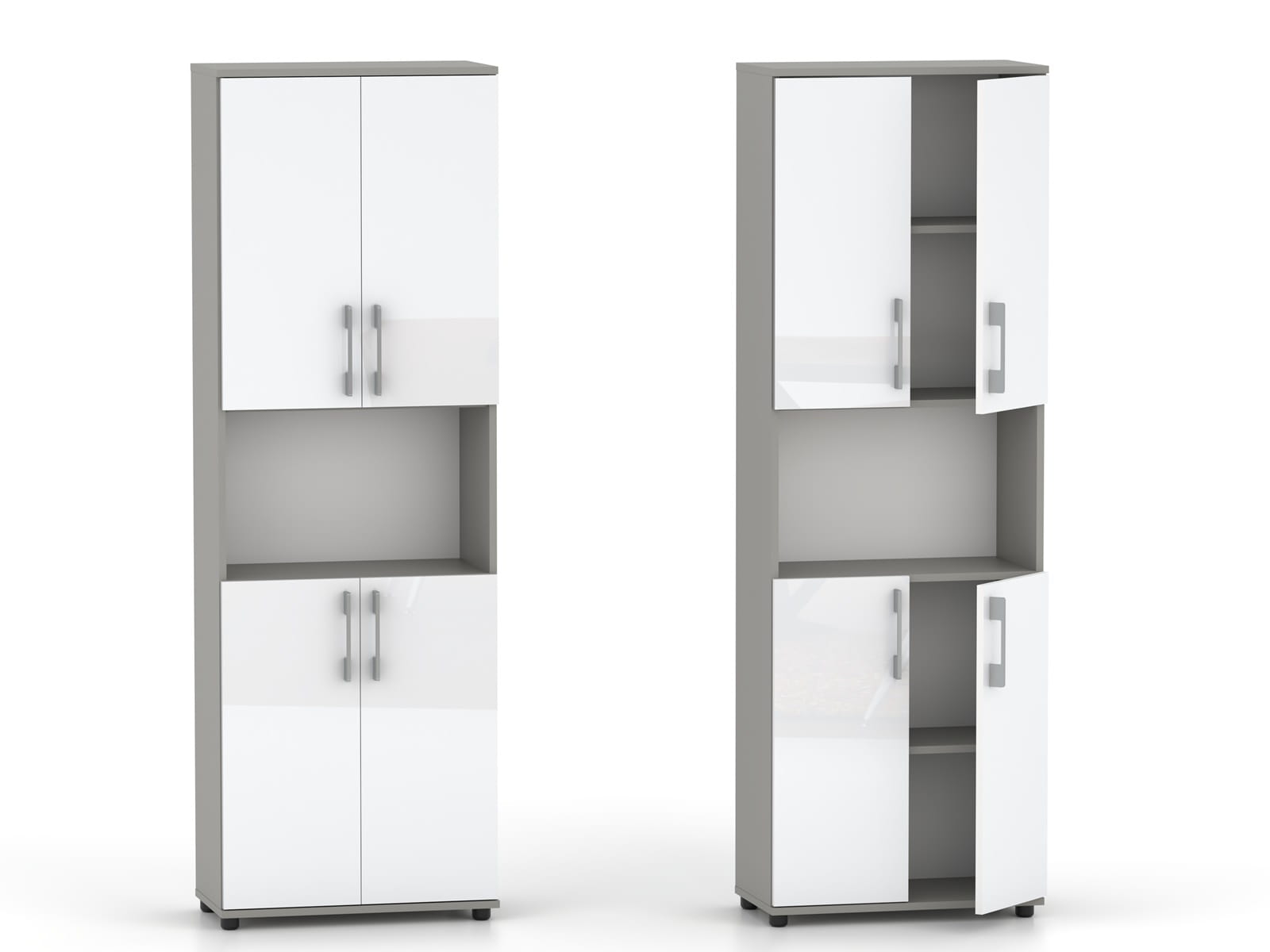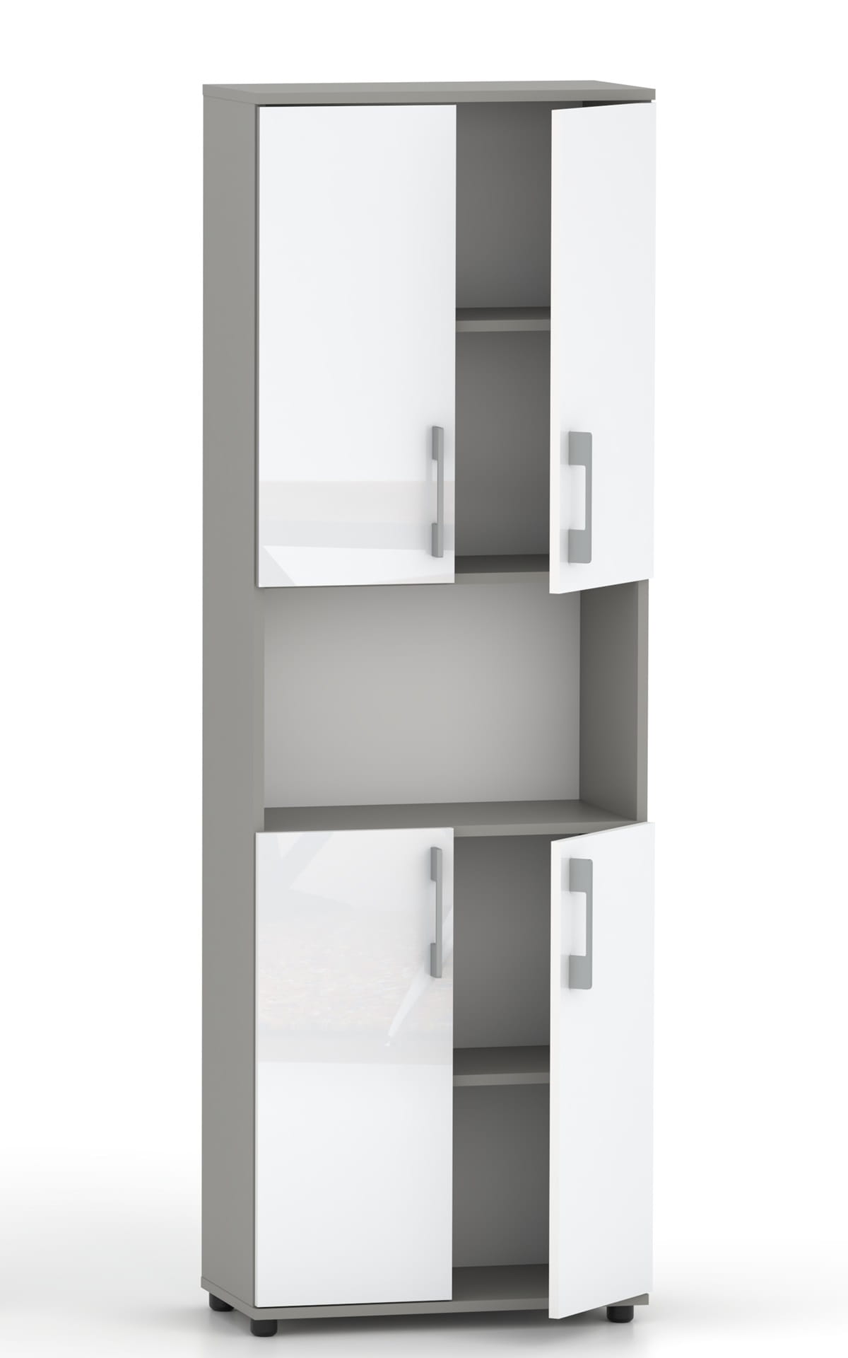 Regał biurowy na ksiażki i segragatory G 60 4D Szara z frontami w połysku