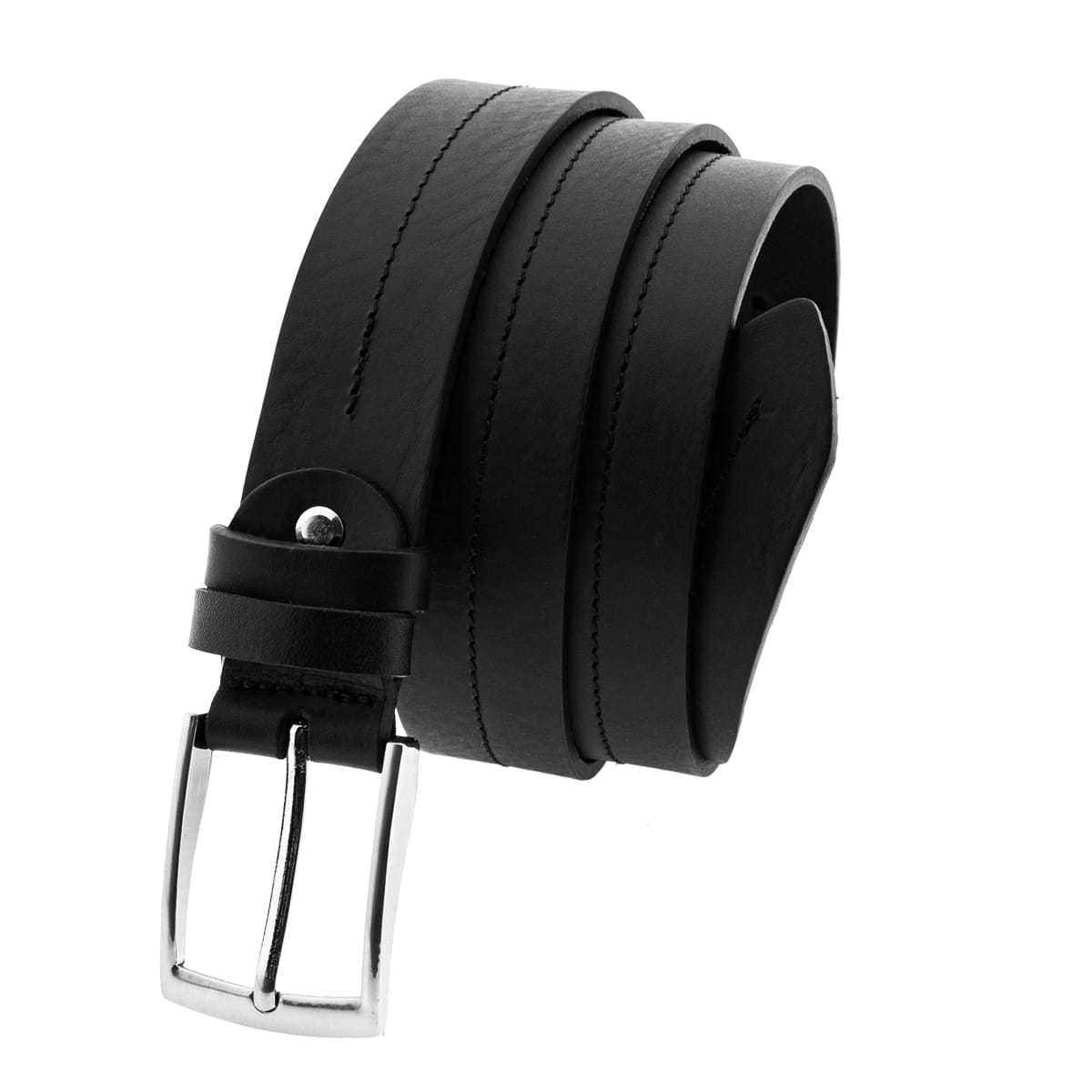 Skórzany pasek męski czarny z przeszyciem 114cm