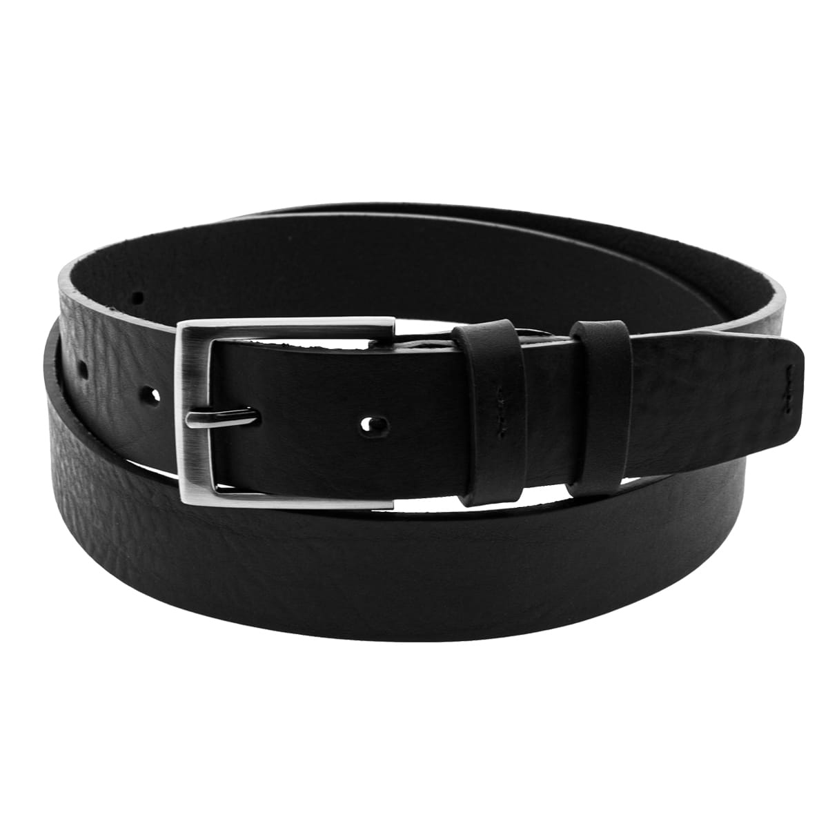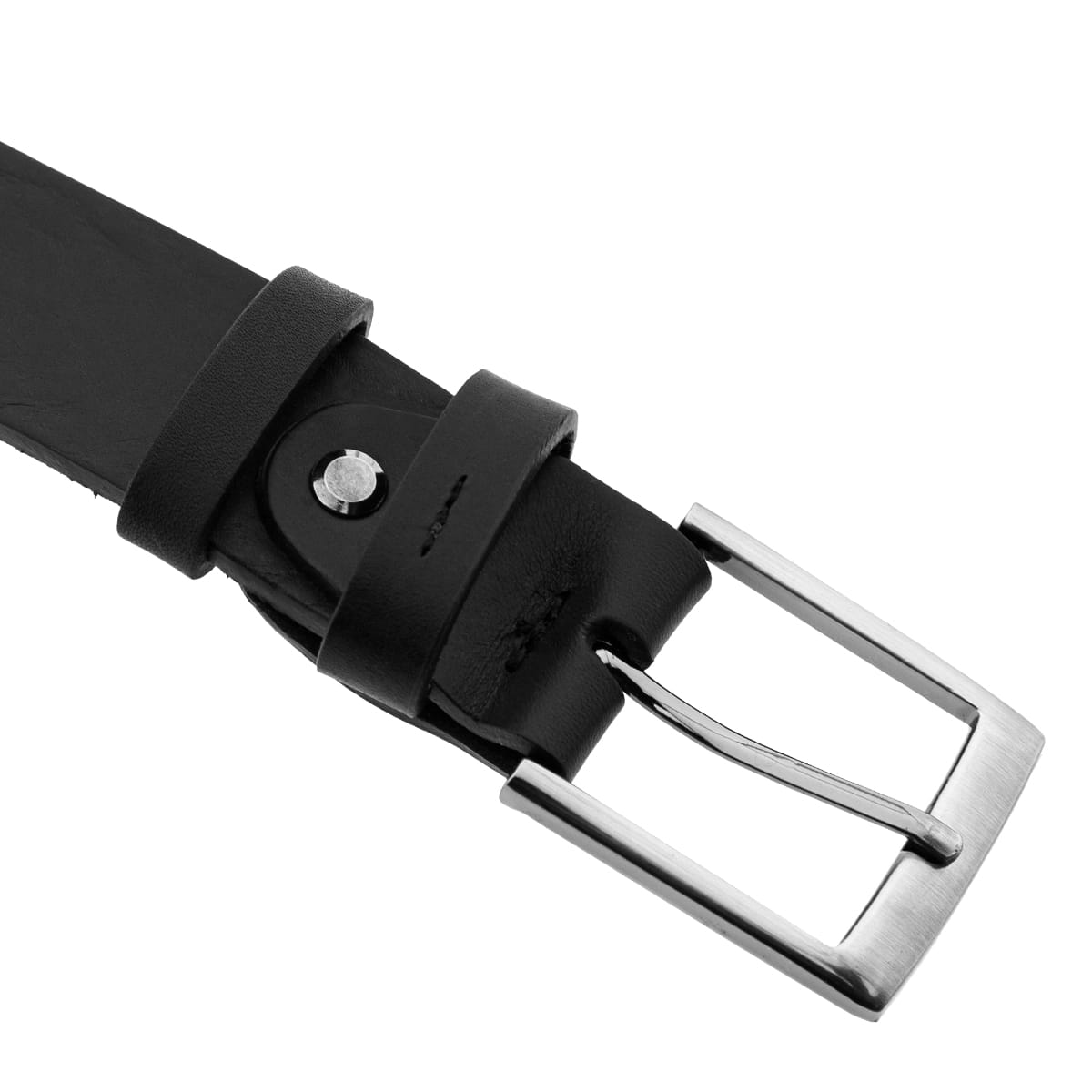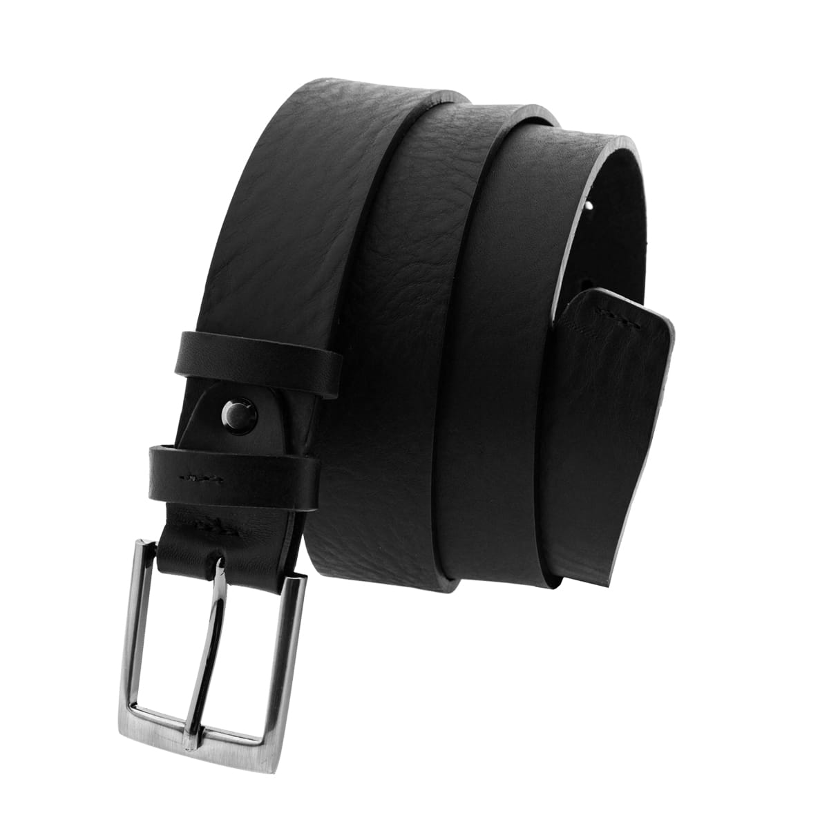 Skórzany pasek męski czarny z przeszyciem na szlufce 114cm