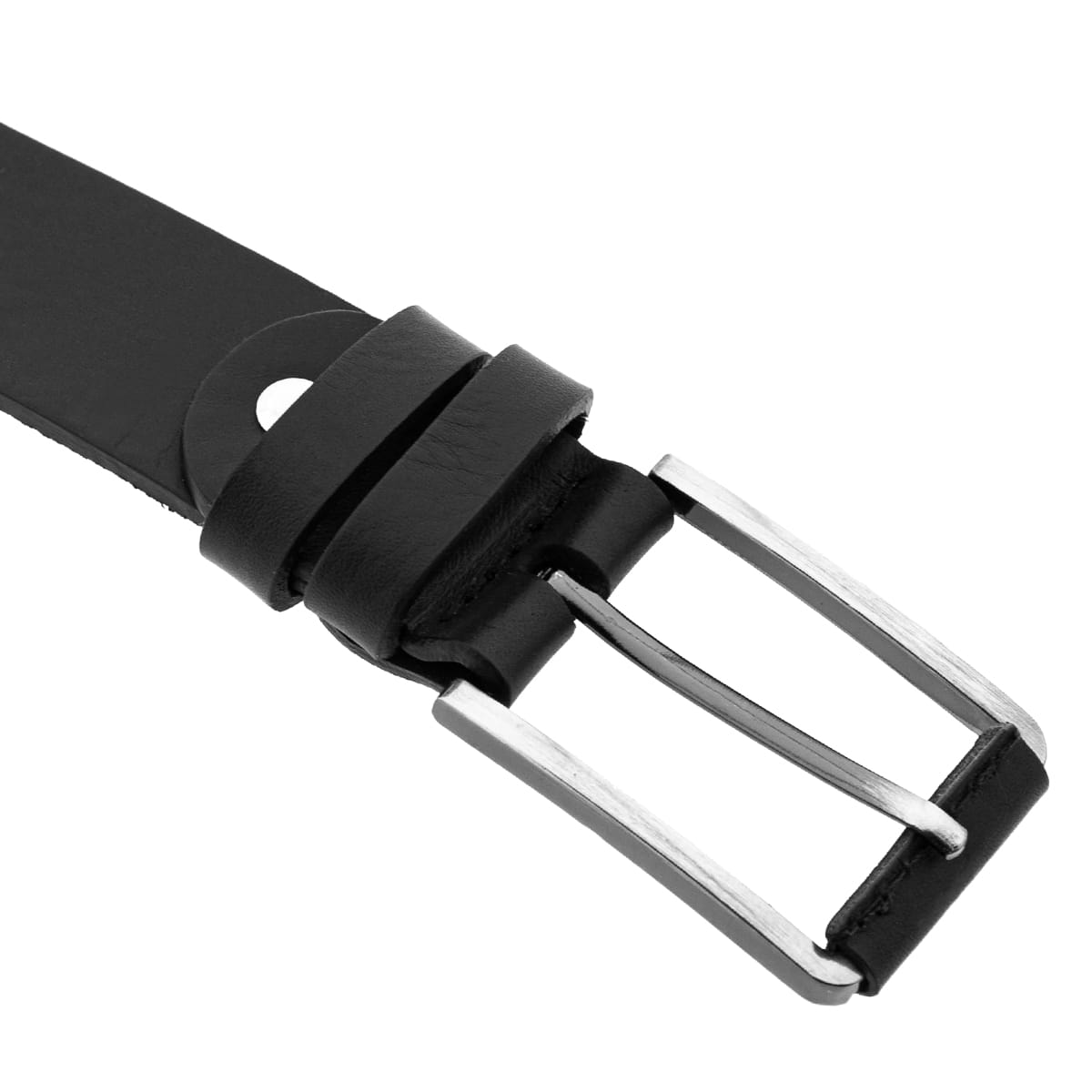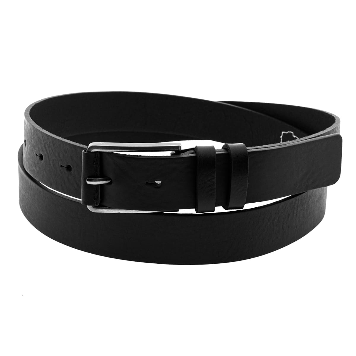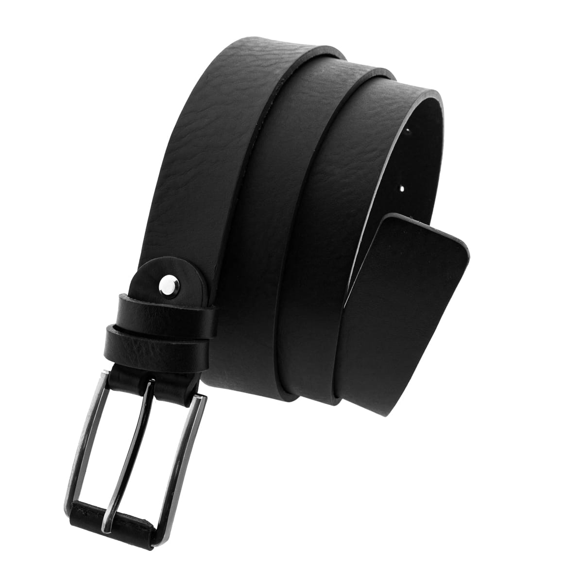 Skórzany pasek męski czarny z przeszytą skórą na klamrze 134cm