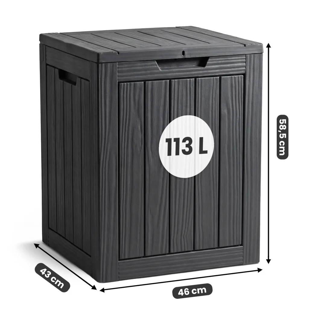 Szukasz sposobu na szybkie uporządkowanie akcesoriów ogrodowych? Skrzynia o pojemności 113 litrów została zaprojektowana z myślą o maksymalnej funkcjonalności przy zachowaniu niewielkich wymiarów zewnętrznych. Jej kwadratowa podstawa (46 x 43 cm) sprawia, że idealnie mieści się nawet w narożnikach małych balkonów czy wąskich przejść tarasowych.