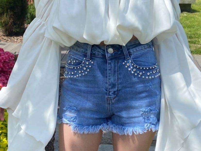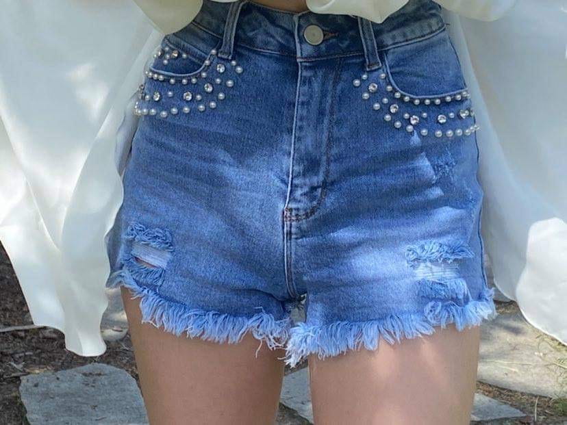 Spodenki jeansowe z perłami xs