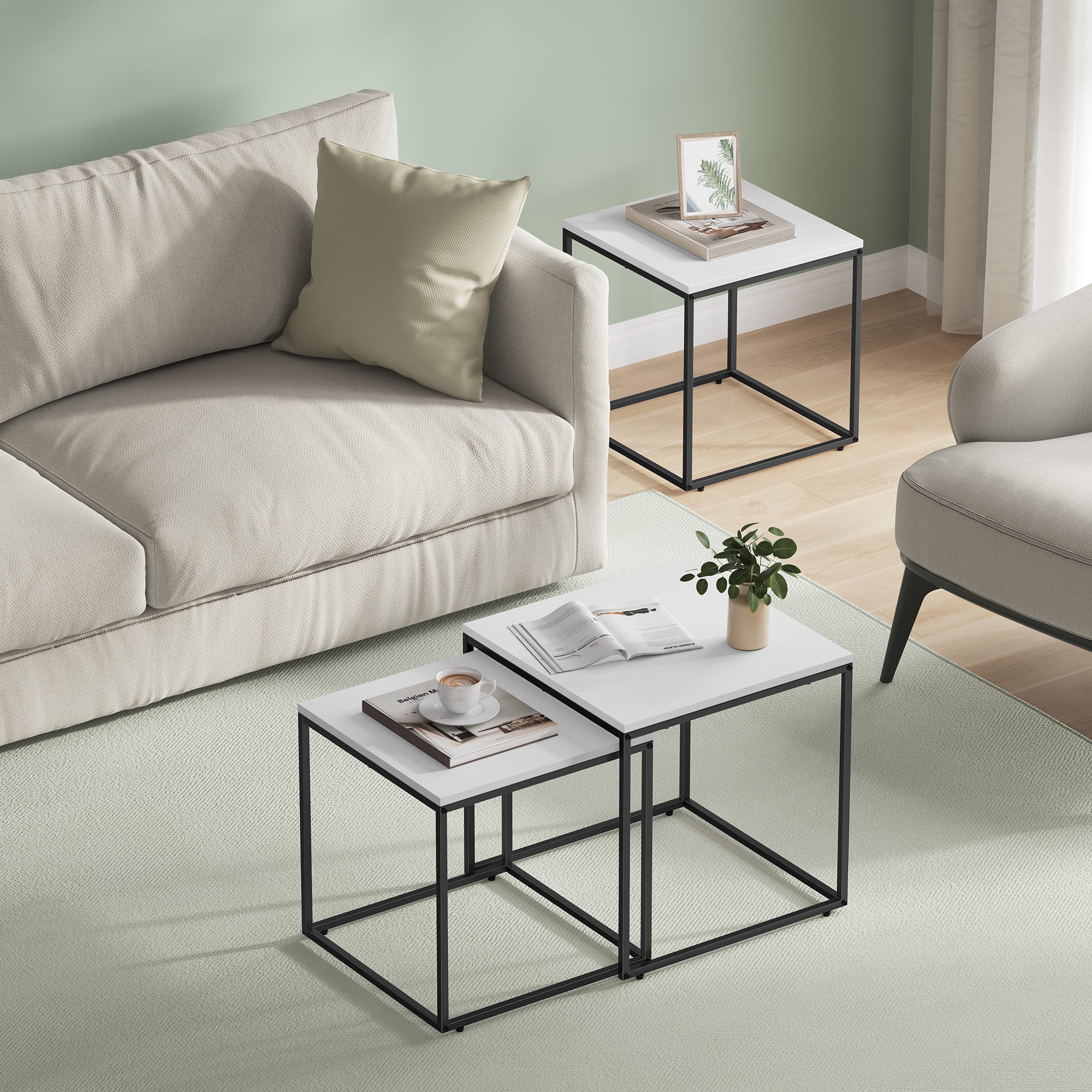 Stolik kawowy kwadrat 2szt - biały / nogi czarne