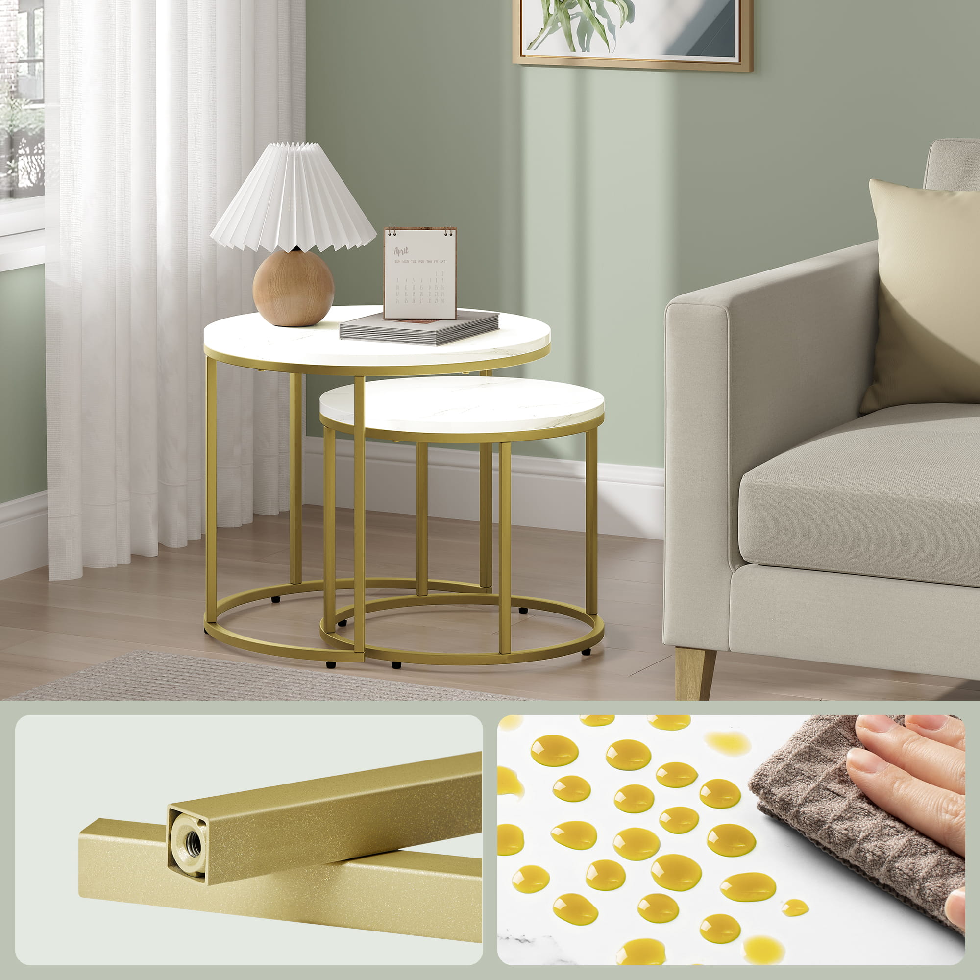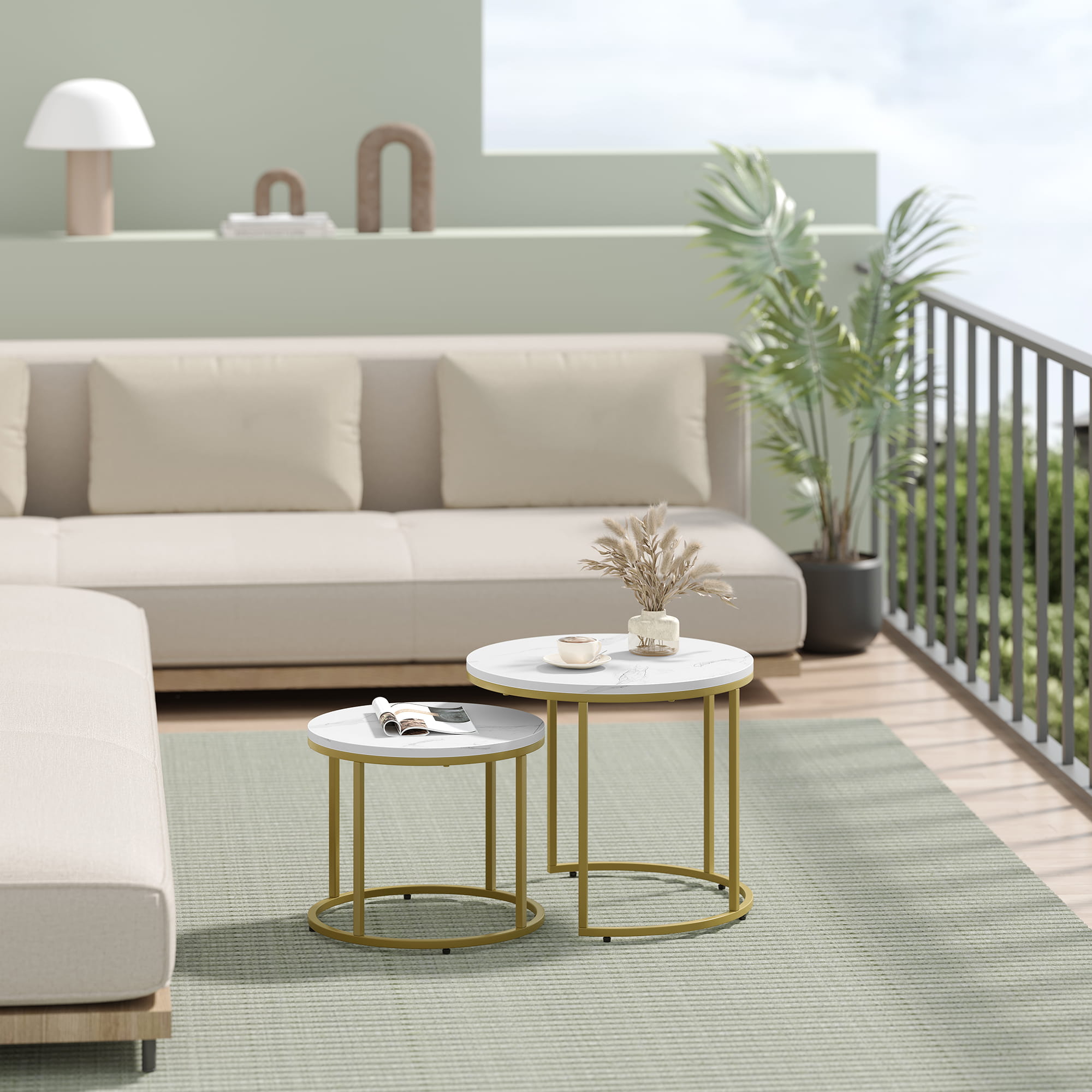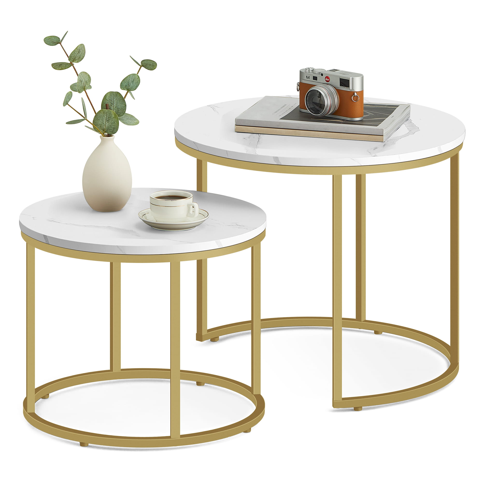 Stolik kawowy okrągły 2szt - marmur / nogi złote