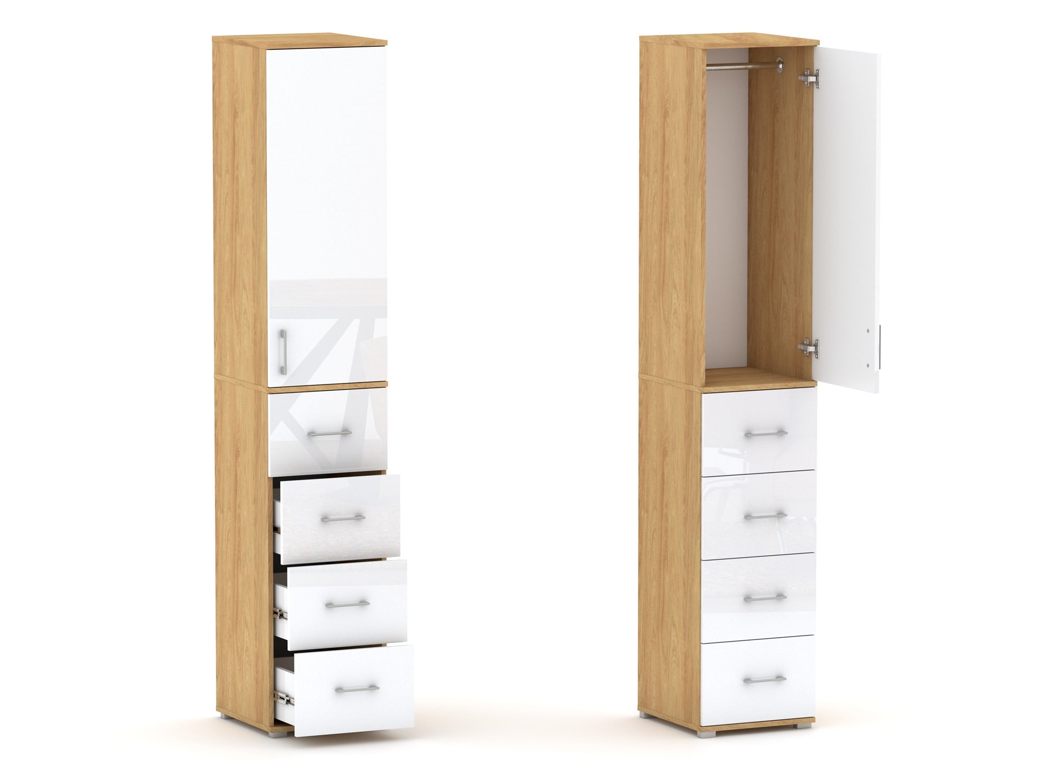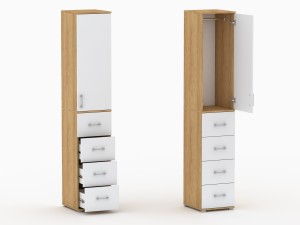 Szafa na ubrania Pola 215 cm z drążkiem i 4 szufladami – Hikora z białymi frontami – szerokość 40/50 cm