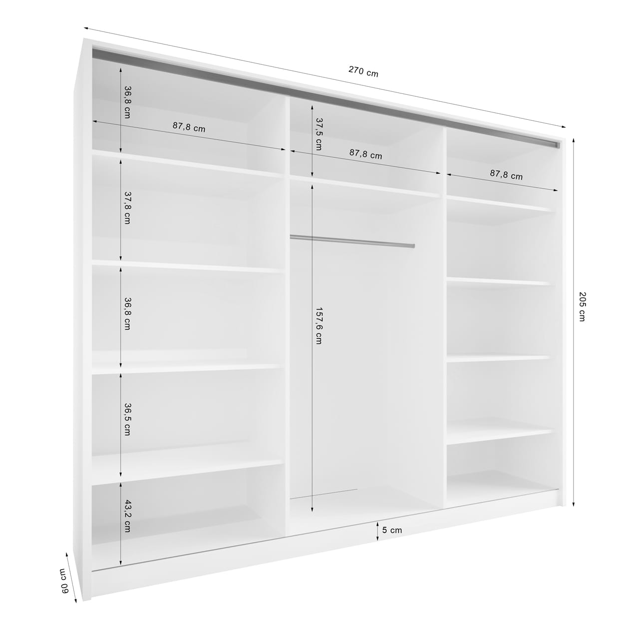 Kod produktu: Korpus szafy przesuwnej 270 biały (okucia srebrne;1 dr